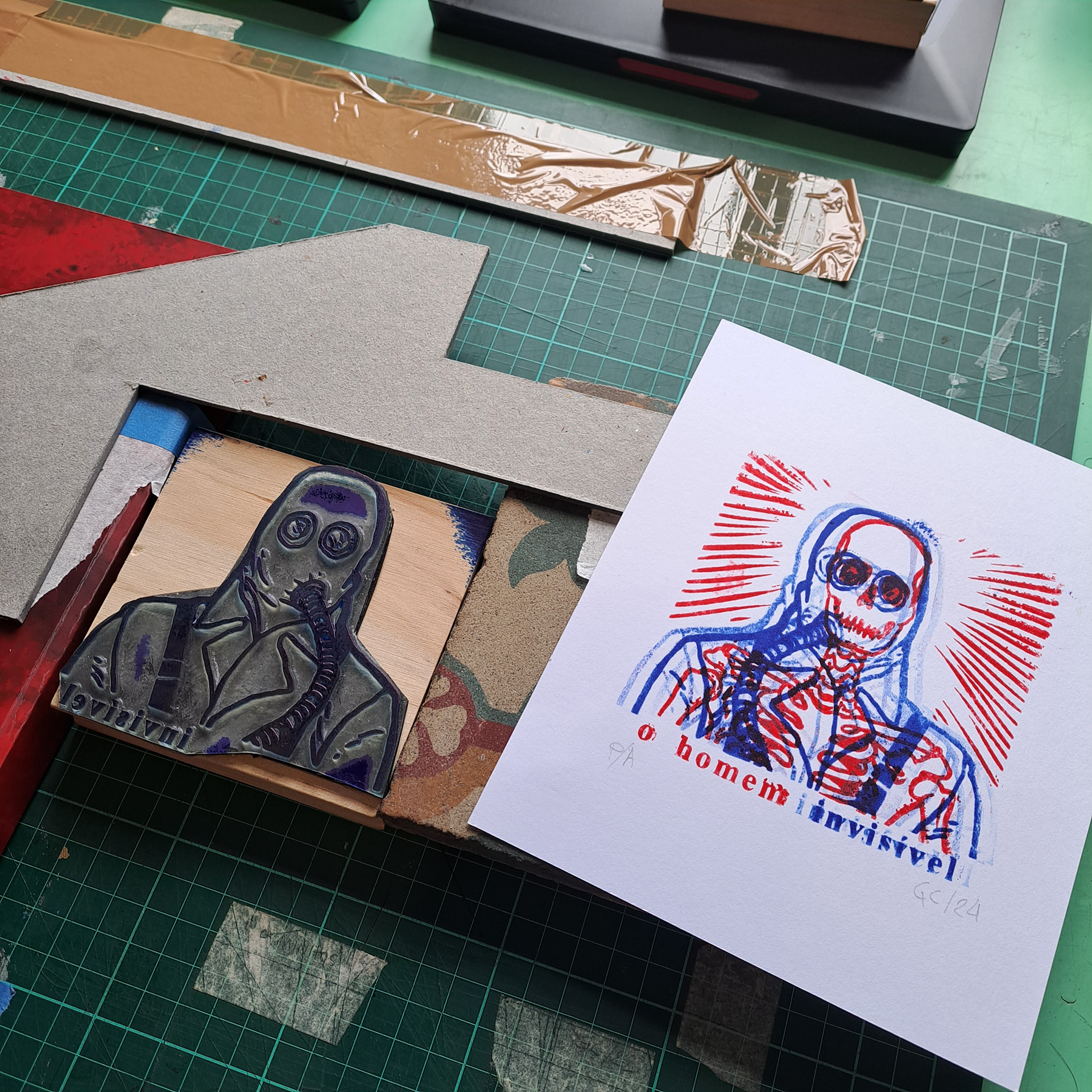 Esta segunda versão do Homem Invisível virou uma proposta de gravura para a mostra de pequenos formatos do Grupo de Pesquisa em Gravura Contemporânea (GraCon).